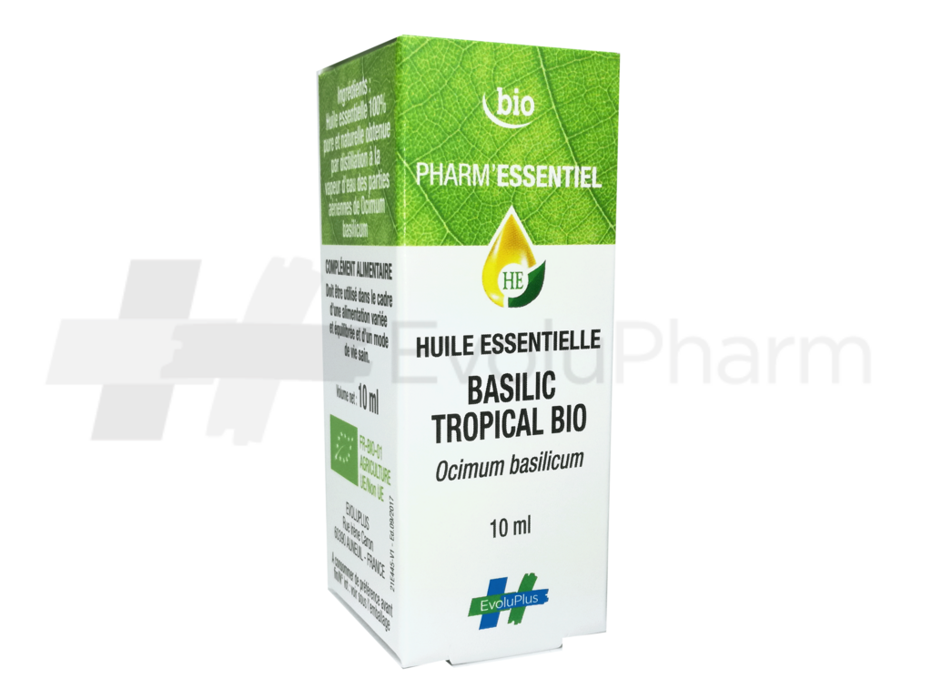 Pharm'Essentiel Huile Essentielle de Basilic Bio 10 ml est un complément alimentaire. Ne pas dépasser la dose journalière recommandée. Les compléments alimentaires ne peuvent être utilisés comme substituts d’un régime alimentaire varié et équilibré et d’un mode de vie sain. Pour votre santé, mangez 5 fruits ou légumes par jour. www.mangerbouger.fr