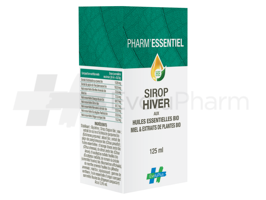 Sirop Hiver aux huiles essentielles Bio, Miel & extraits de plantes Bio. Cette formule est 100% d’origine pure et naturelle.