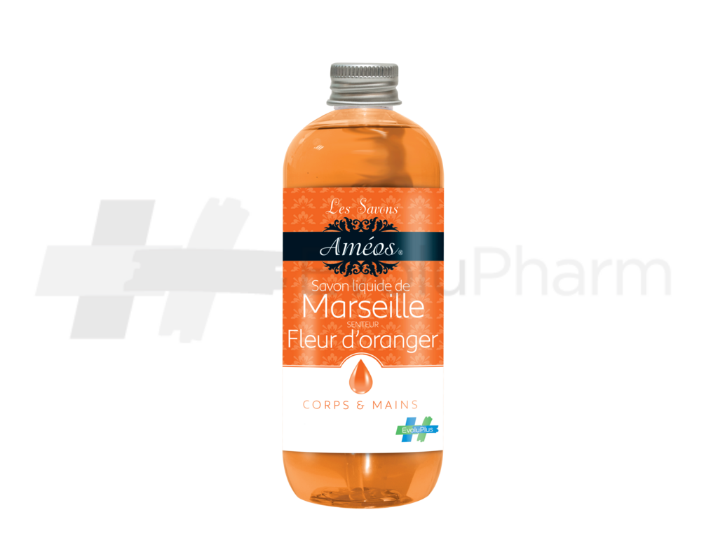 Améos® Savon liquide de Marseille Fleur d'Oranger 75 ml est un produit cosmétique à usage externe. Lire les informations figurant sur les produits avant utilisation.