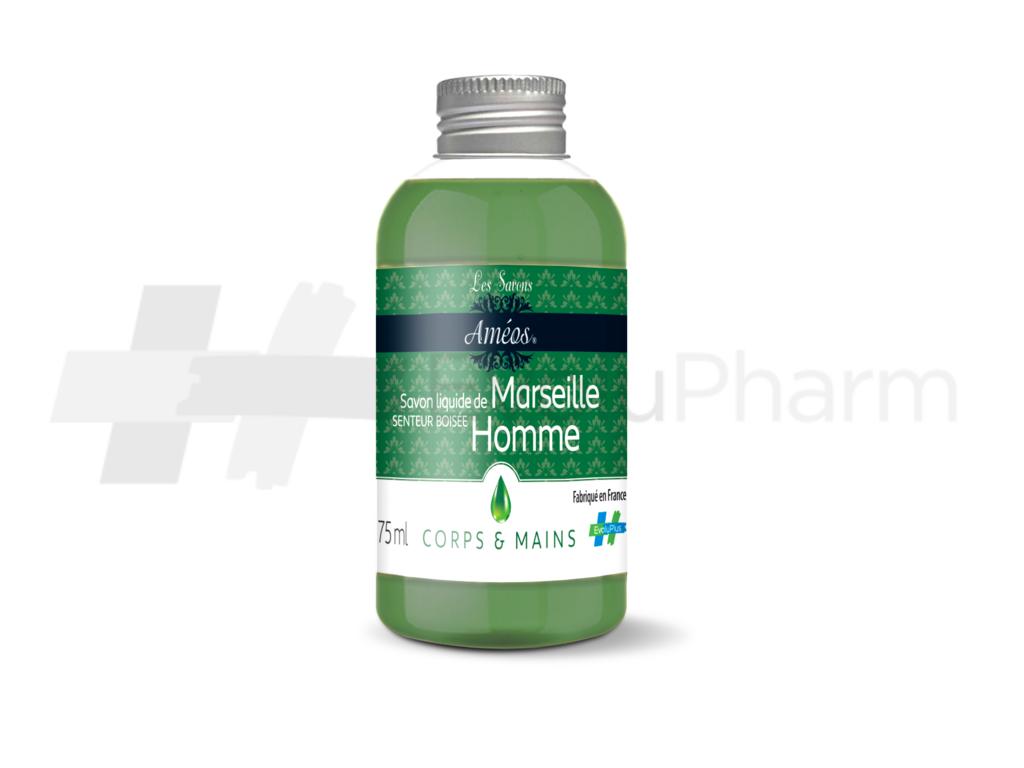 Améos® Savon liquide de Marseille Homme 75 ml est un produit cosmétique à usage externe. Lire les informations figurant sur les produits avant utilisation.
