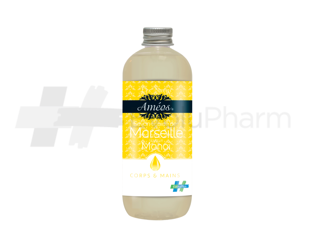 Améos® Savon liquide de Marseille Monoï 75 ml est un produit cosmétique à usage externe. Lire les informations figurant sur les produits avant utilisation.