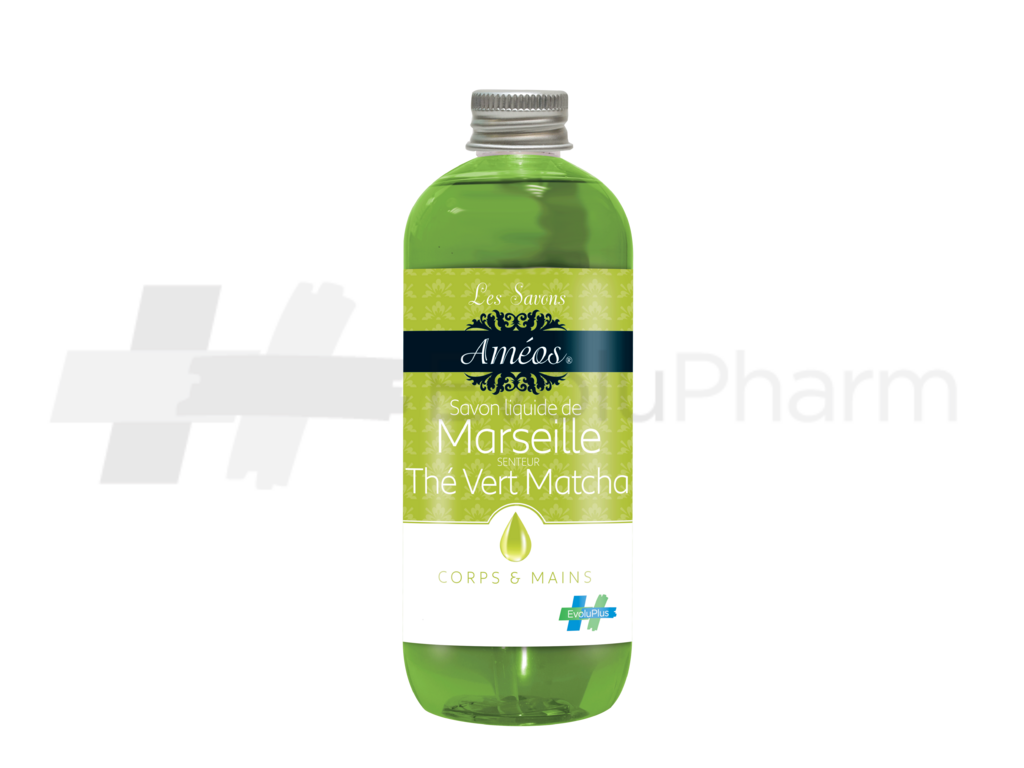 Le Savon liquide de Marseille Améos® senteur Thé Vert Matcha est à base d’huile 100% d’origine végétale.