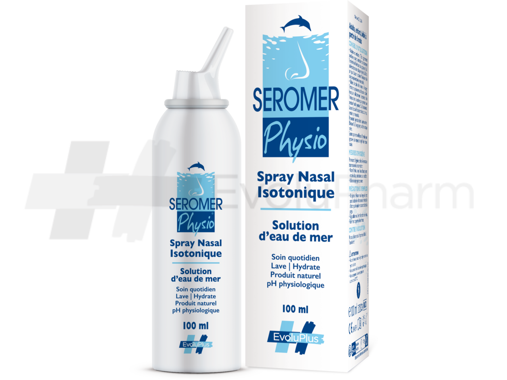 SEROMER Physio® est un spray nasal à base d’eau de mer isotonique riche en oligo-éléments (zinc, fer, cuivre, magnésium, calcium, sodium, fluor, manganèse…) qui permet de laver le nez quotidiennement sans agresser la muqueuse nasale.