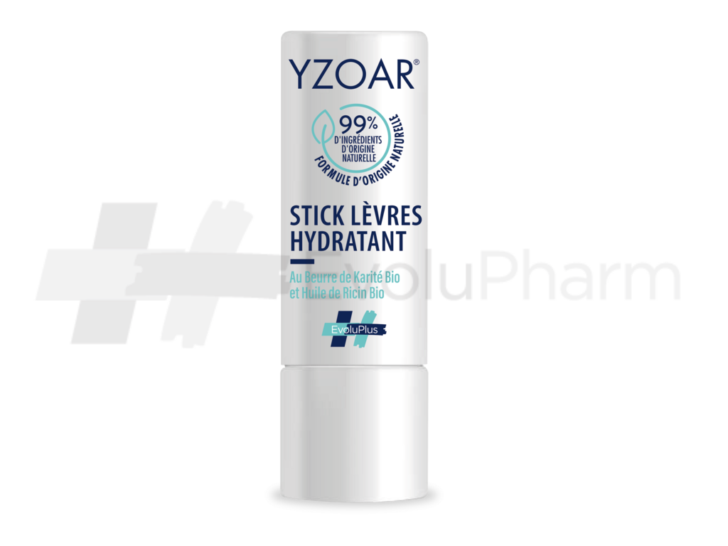 Le stick lèvres Yzoar® Hydrantant contient du beurre de karité bio, de l'huile de ricin bio et de la cire d'abeille.