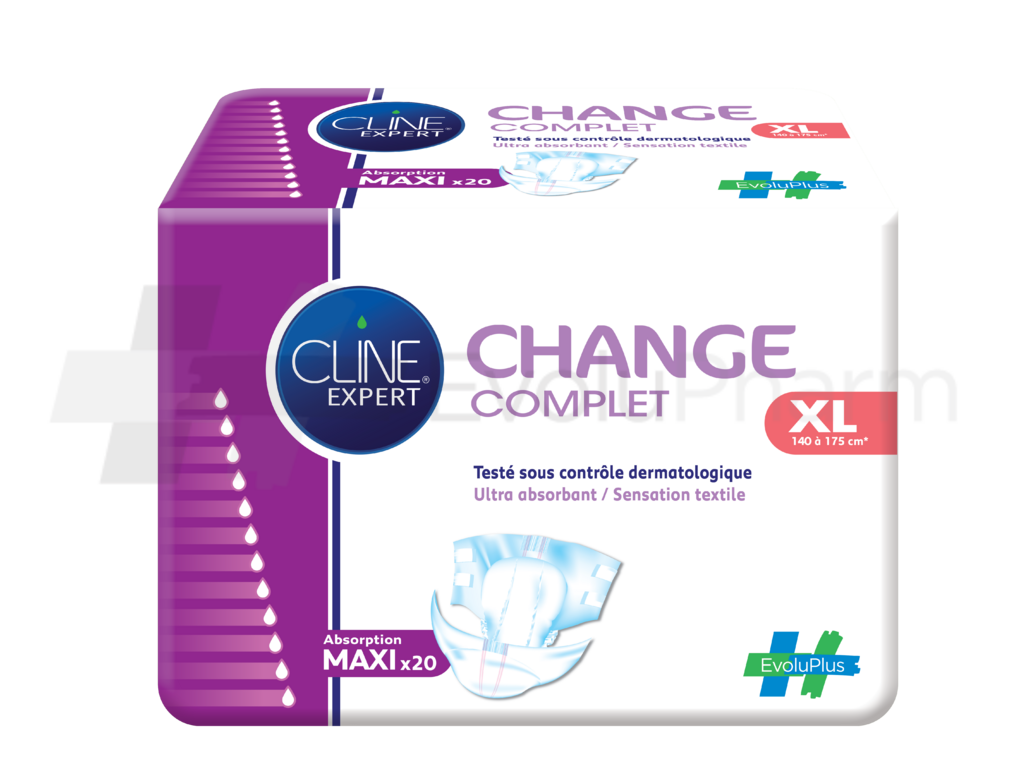 Ce dispositif médical Cline Expert® Change Complet maxi XL x20 est un produit de santé réglementé qui porte, au titre de cette réglementation, le marquage CE. Pour toute information, veuillez vous référer aux instructions figurant sur le produit ou la notice. En cas de doute, consulter un spécialiste ou parlez-en à votre pharmacien.