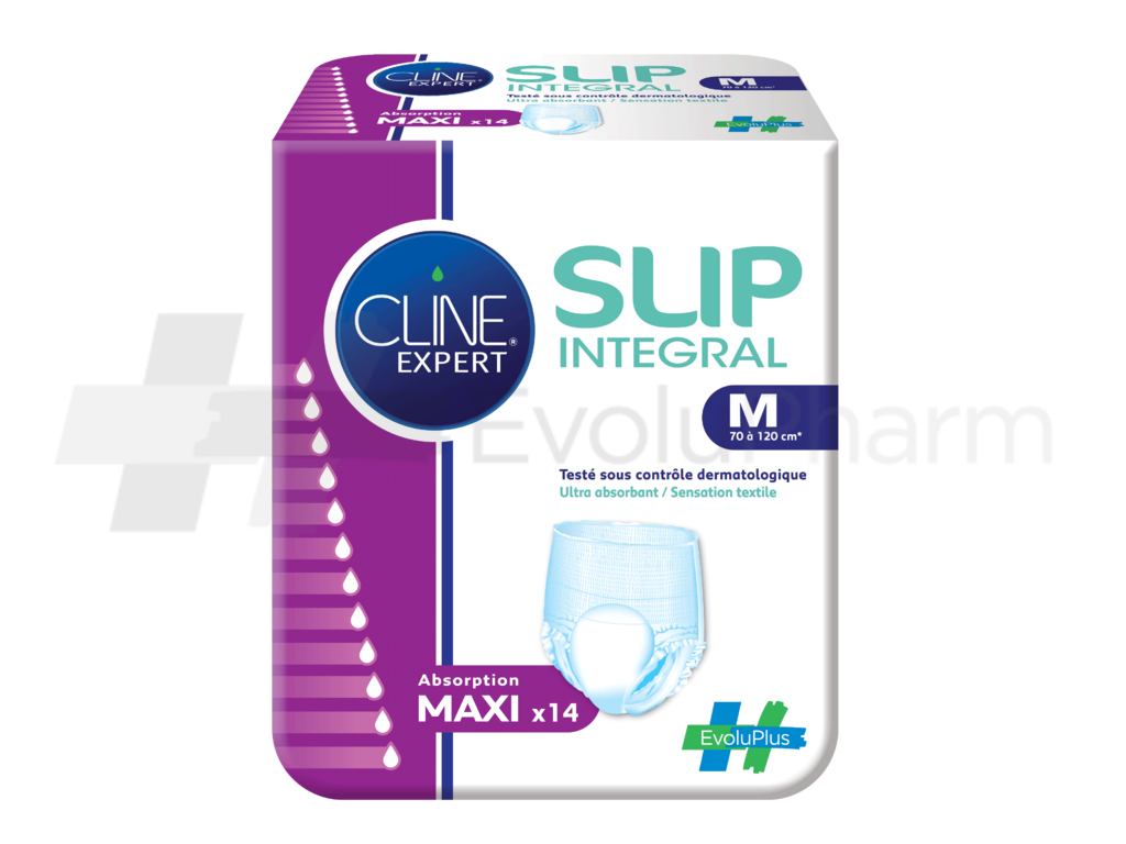 Ce dispositif médical Cline Expert® Slip Intégral maxi M x14 est un produit de santé réglementé qui porte, au titre de cette réglementation, le marquage CE. Pour toute information, veuillez vous référer aux instructions figurant sur le produit ou la notice. En cas de doute, consulter un spécialiste ou parlez-en à votre pharmacien.