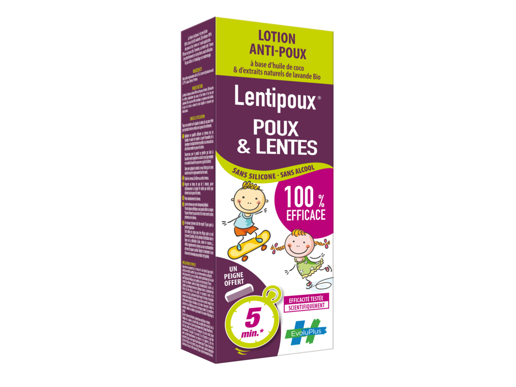 La lotion sans rinçage Lentipoux® 100 ml est une lotion 100% à base d’actifs naturels (huile de coco & extraits naturels de lavande Bio). Elle élimine 100% des poux et des lentes en 1 seule application. Efficace sur poux dès 15 minutes, sur lentes dès 1 heure. Un peigne est offert.